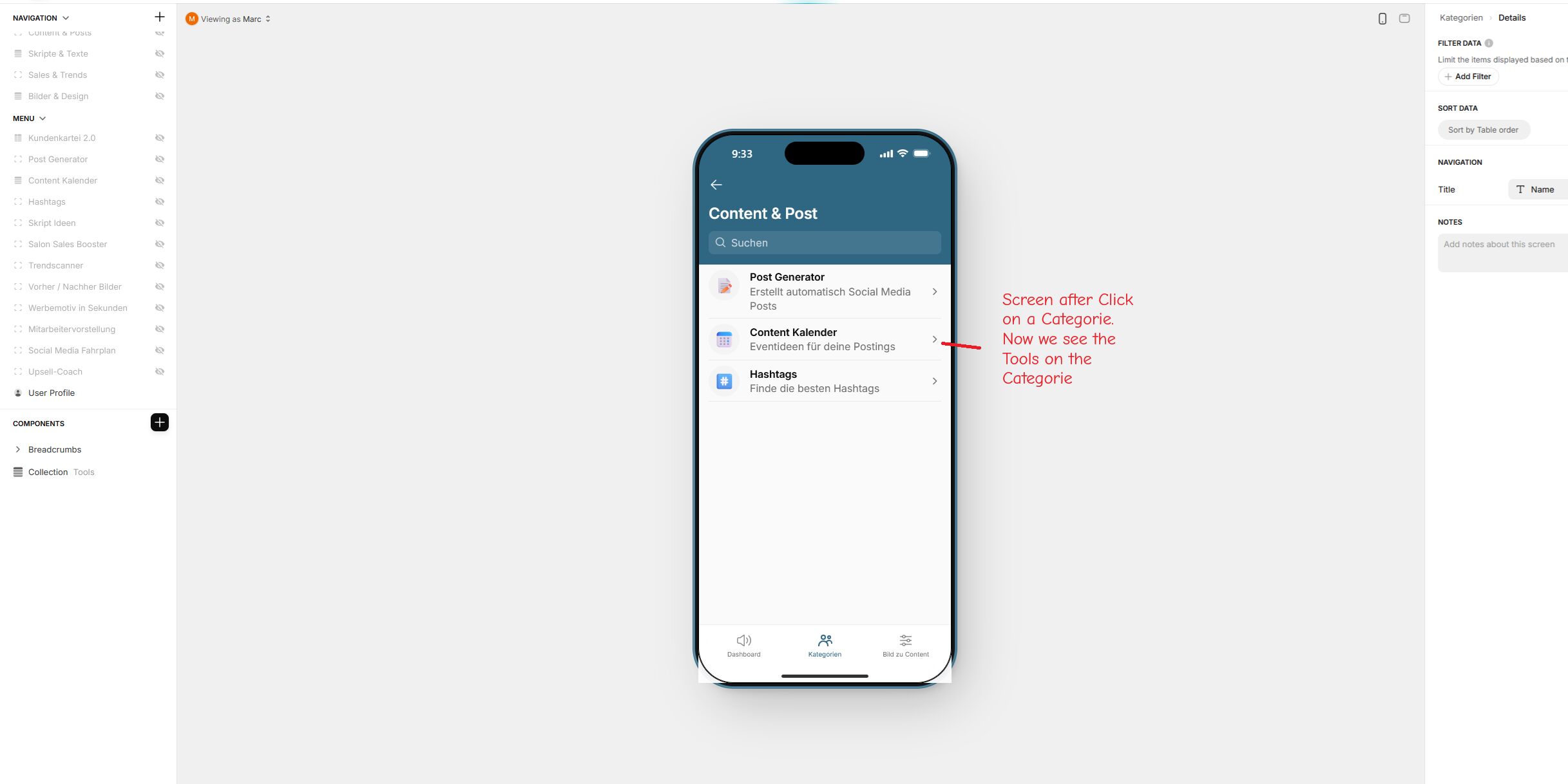 Does anyone have an idea how to properly structure these tools in the app? Ideally, I’d like to have categories with the tools organized inside them.