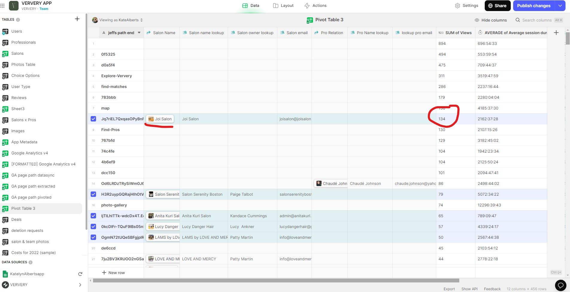 However, the salon that most recently has the most views and is actually at the number 1 spot in the data table (seen below) Joi Salon…is missing on the chart.