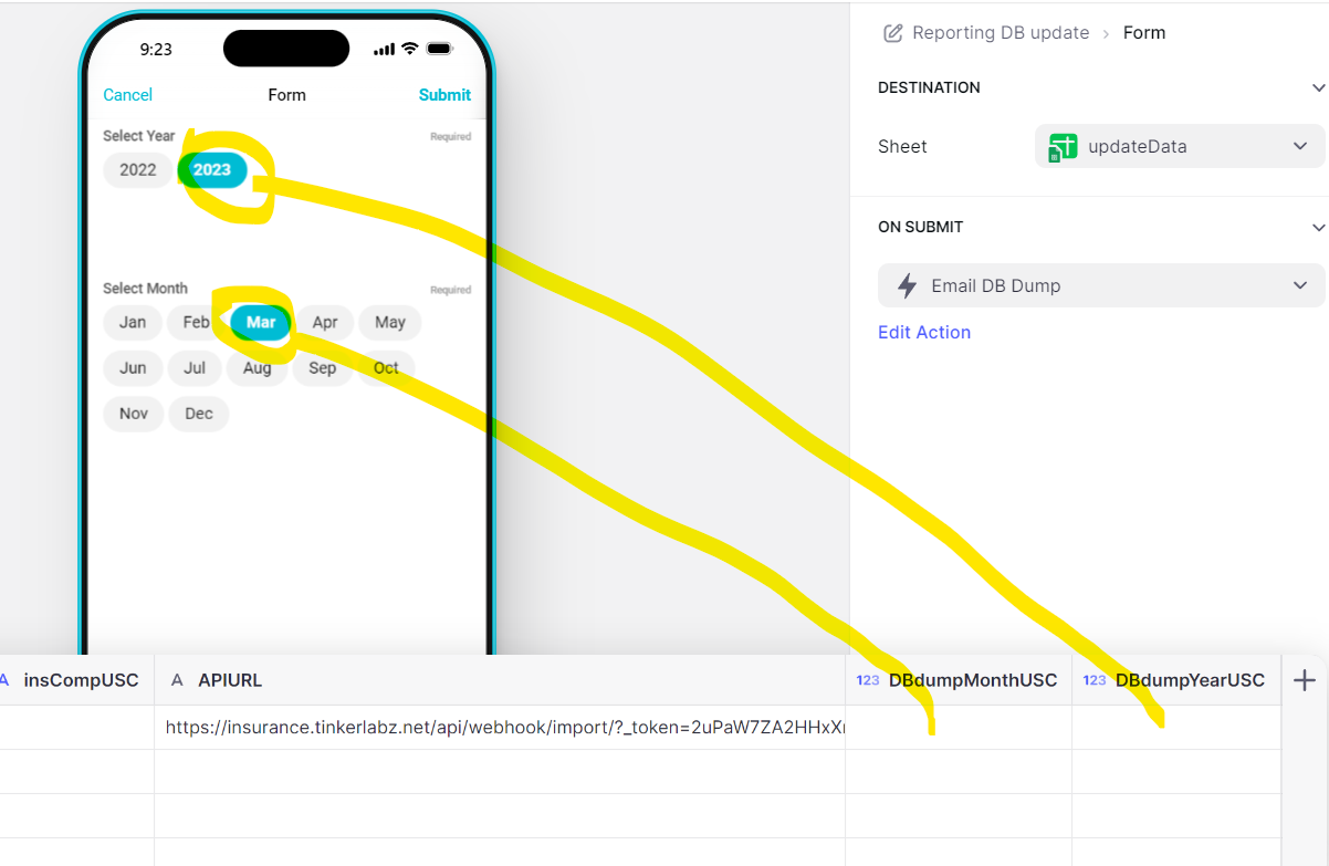 User selects the year and month (required fields) and on submit it calls a webhook with the month and year as values.