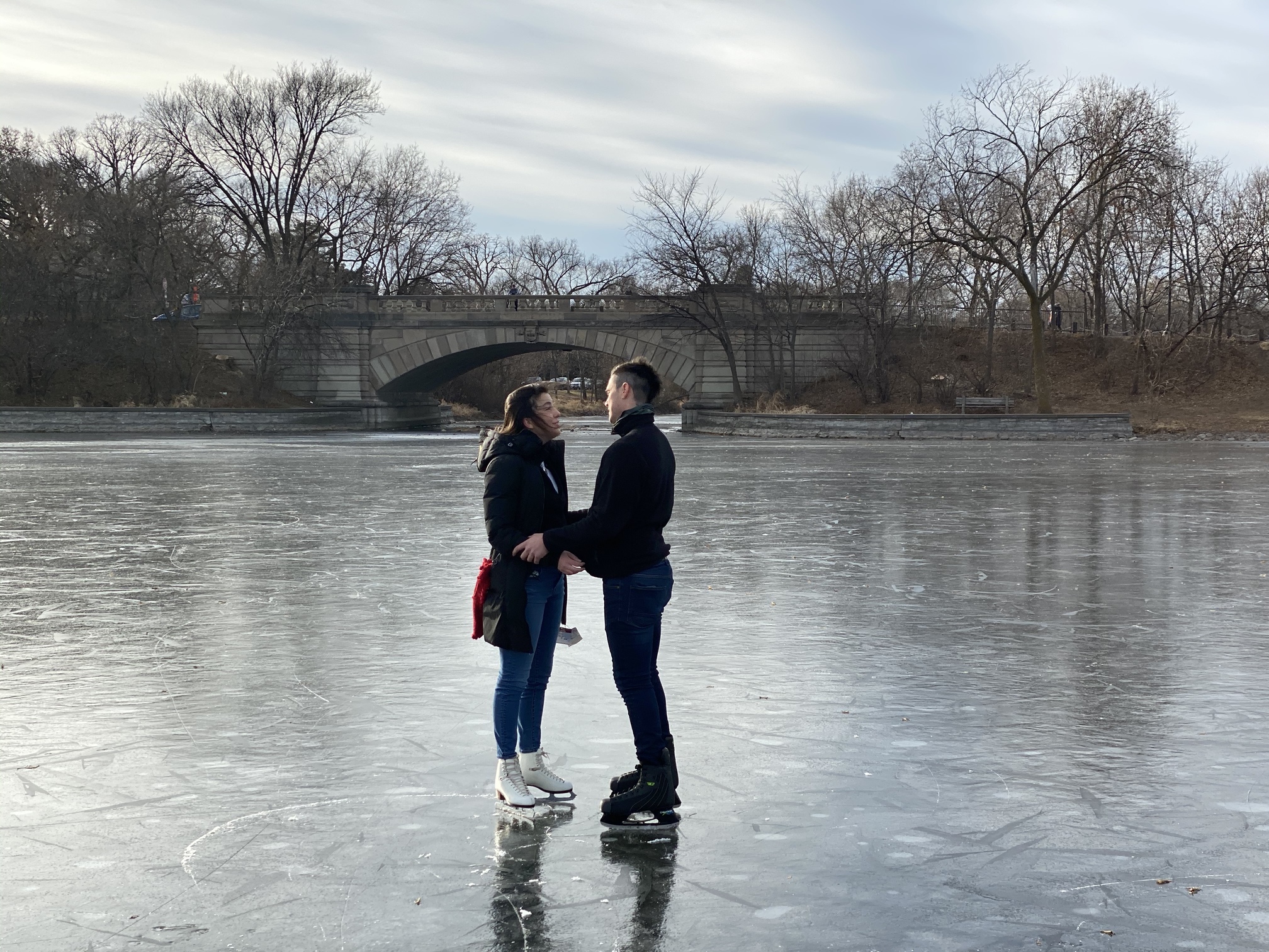 Rockin’ the skinny jeans and ice skates! That’s a magical engagement photo! Congrats @david!