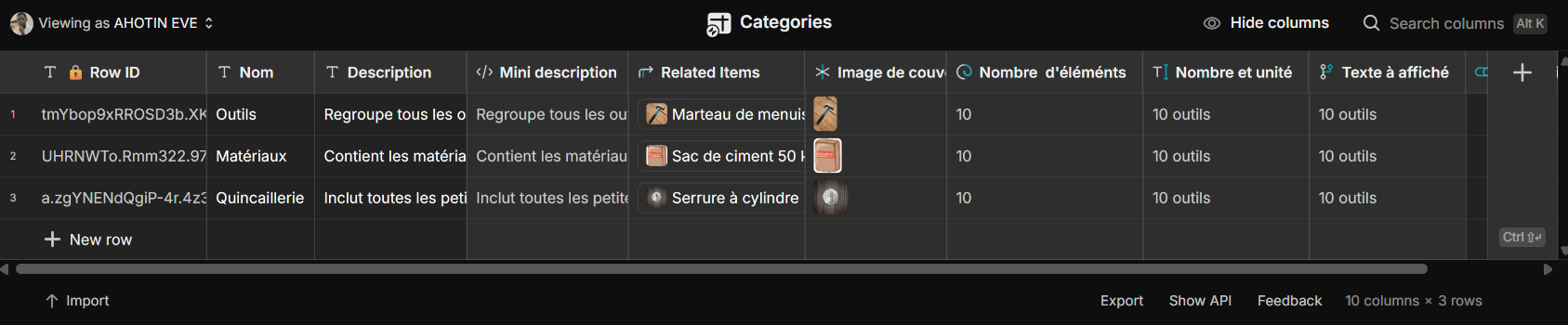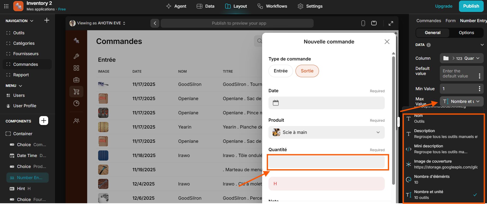 In my database, I’ve created several tables, one of which is called ‘products’. This table has a template column named ‘Quantities Remaining’. If the user wants to save an output order, I want to display the quantity in stock based on the selected product in a hint component and prevent them from entering a quantity greater than the actual stock level. To dynamically define the content of the component, the Glide component suggests columns from the category table instead of those from the product table.