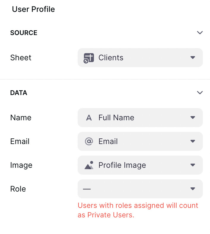 As for your Email (Name) column and Image (Profile Image) column, you did change the column types to email and image respectively?