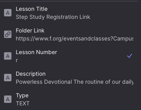 Now, on that same screen, I want to display text headers to set up the Inline Lists. I don’t want to do this in the Glide app with a Text “Custom” component because the headers will be dynamic, assigned as a “Header” type in this same Lessons sheet, along with the text.
