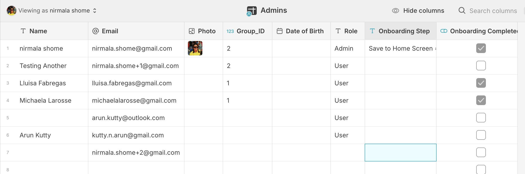 So I’m testing with another users in the app and I see for some reason when I view our Users/ Admin table it’s different to mine? I thought that the user table would remain consistent across all views?