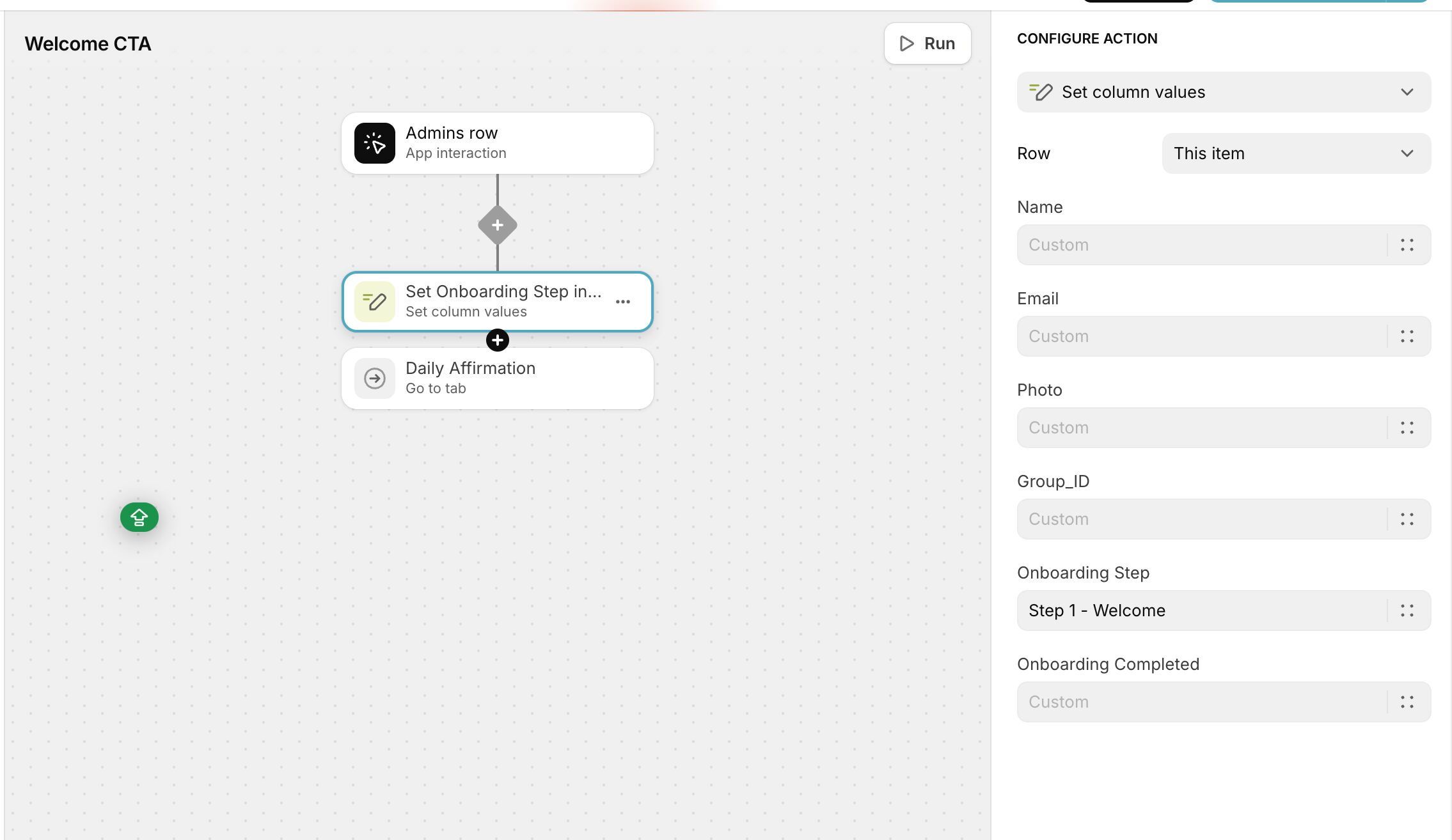 I’ve set up a series of onboarding screens and conneted them using workflows that will update a column for each user profile on how much they have completed and then after the final step they get a true result for a boolean column Onboarding Completed.