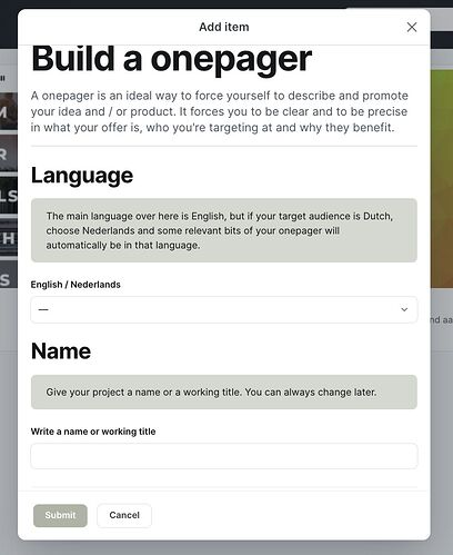 And so far I have made a button > show form screen, writing to a new row in that One Pager table but with some explanation texts in between (see picture below).