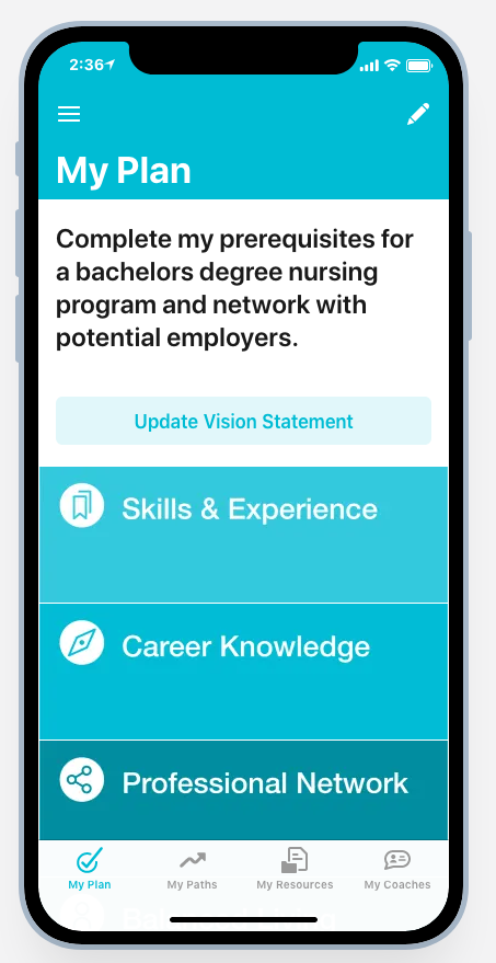 In this career coaching app (screenshot attached), every user has a personal “Vision Statement” on their home screen. Instead of relying on the Edit button in the upper-right, I would like to use a large button to edit this row.